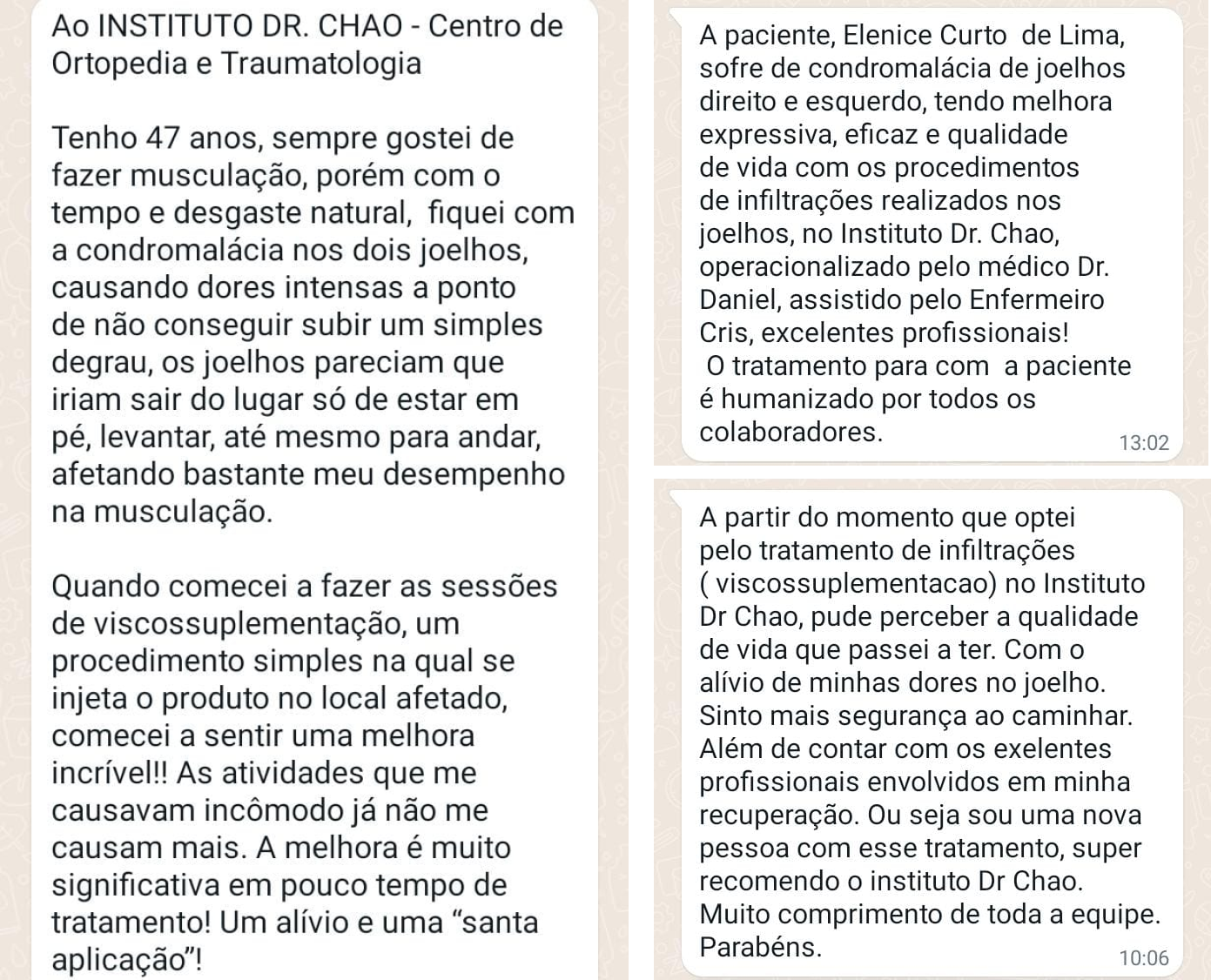 O Instituto Dr Chao é uma instituição especializada em cuidados ortopédicos, tratamento da dor e saúde integrada. Nosso compromisso é proporcionar ao paciente uma experiência acolhedora e empática, oferecendo tratamentos inovadores e eficientes, que visam a saúde e qualidade de vida de pacientes com dores ortopédicas.